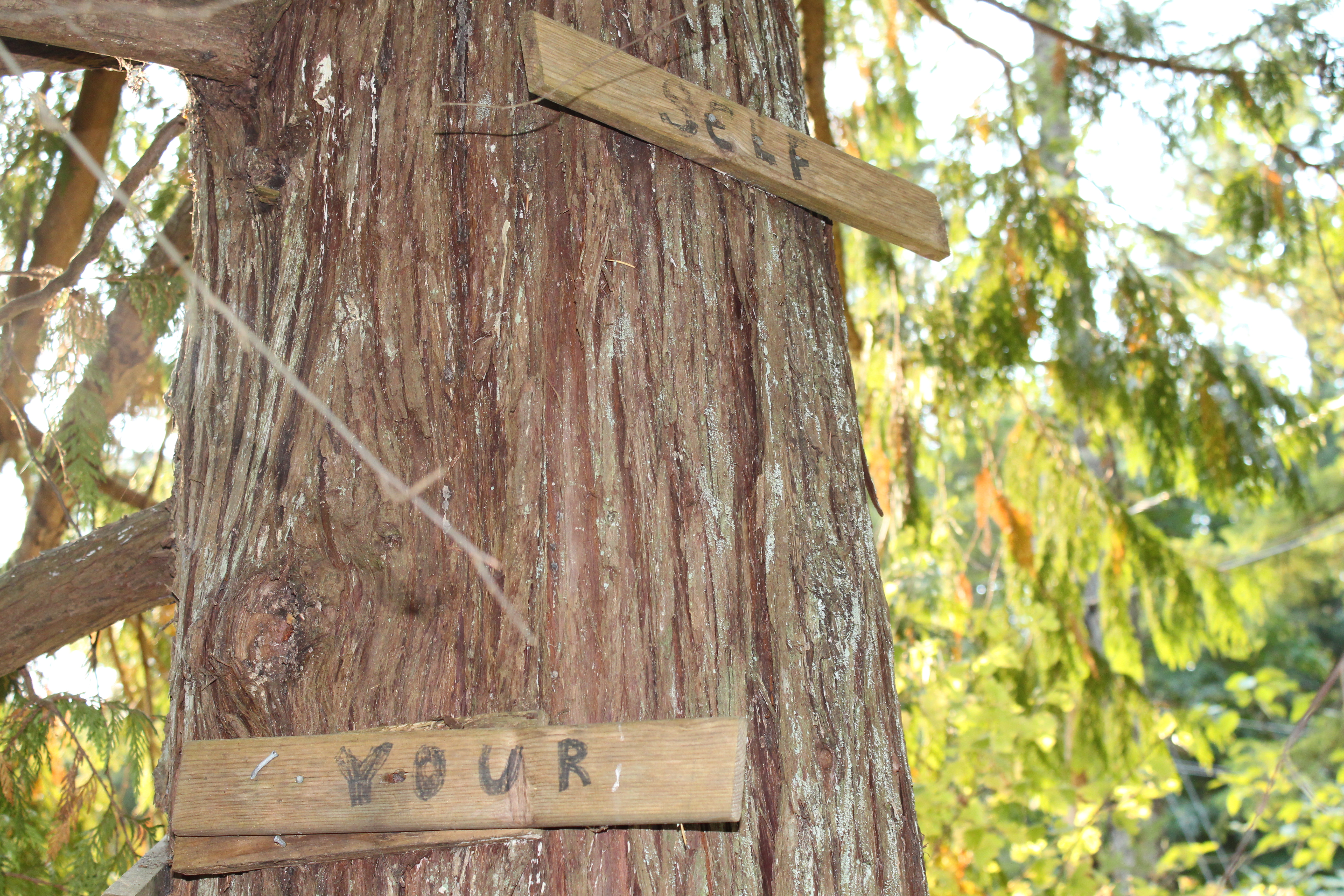 When my daughter and her friend were old enough to write and climb trees, they created these steps of wisdom on this cedar tree. A beautiful reminder for everyone walking by.